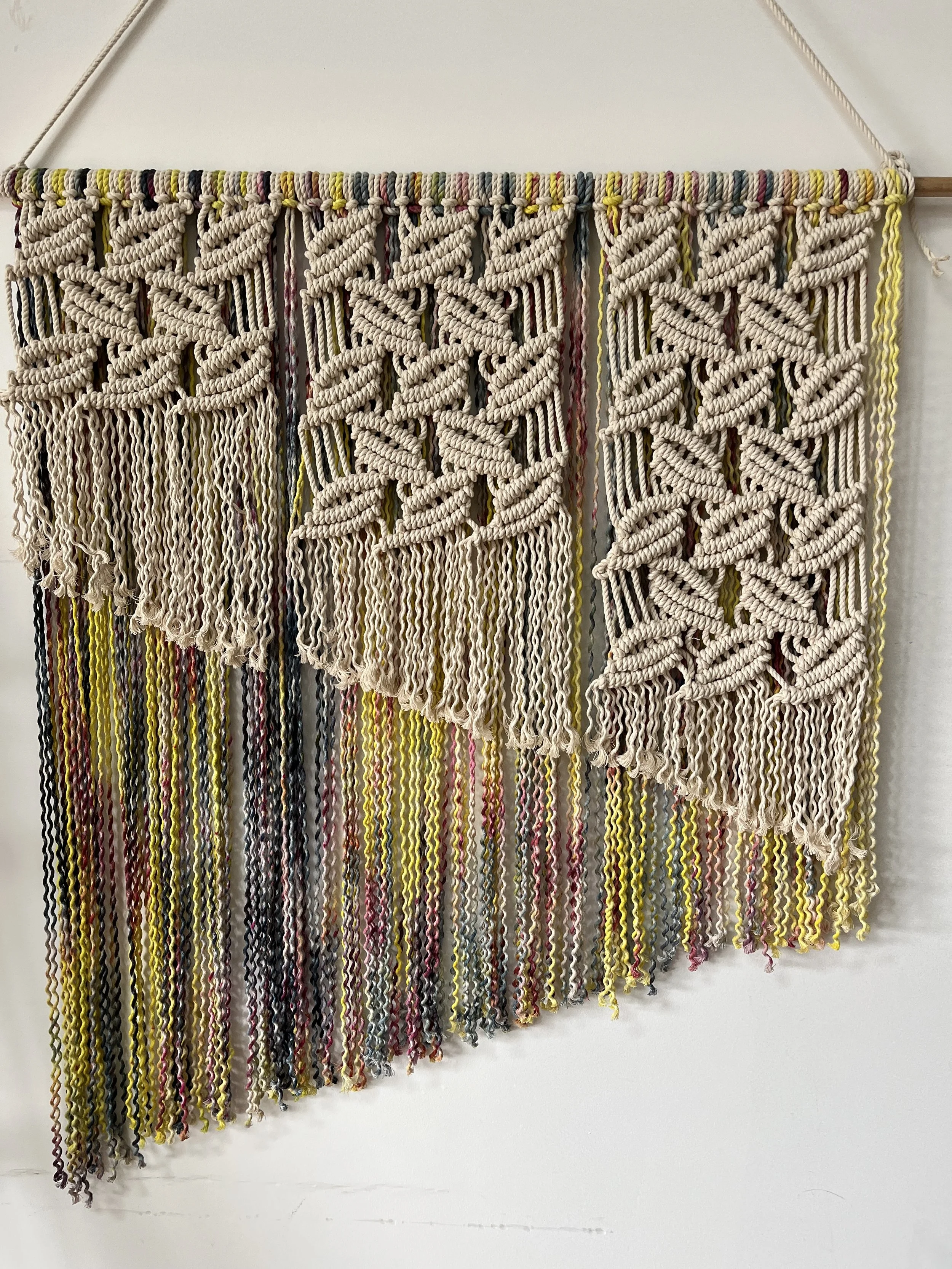 For beautiful, hand-made, bespoke commissioned creations made from cord and fabrics that have been ice-dyed by hand, to become modern macramé functional art, accessories and soft furnishings.